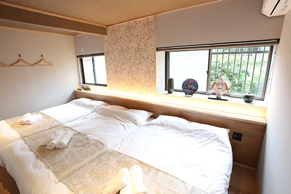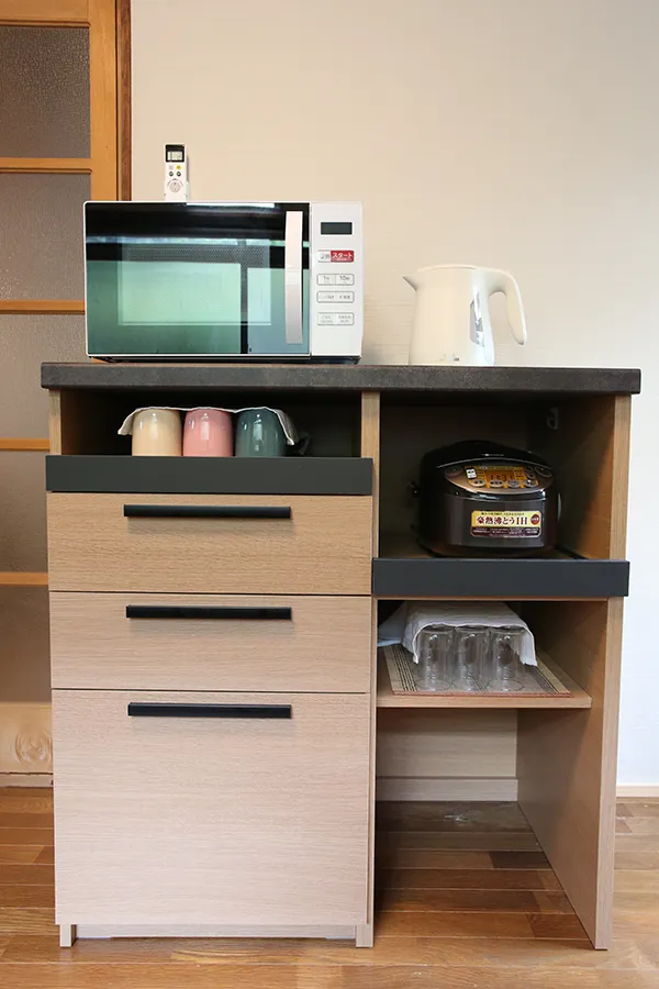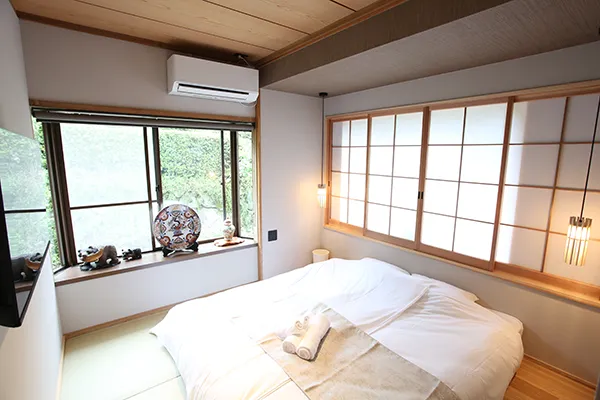 1階にあるユニットには、ダイニングエリア、畳敷き、モダンな家電を備えた設備の整ったキッチンが備わっています。モダンな設備:無料Wi-Fi、エアコン、ストリーミングサービス、洗濯機を利用できます。ダイニングテーブル、ソファ、テレビ、冷蔵庫、電子レンジ、コンロ、電気ポットを備えた設備の整ったキッチンも備わります。